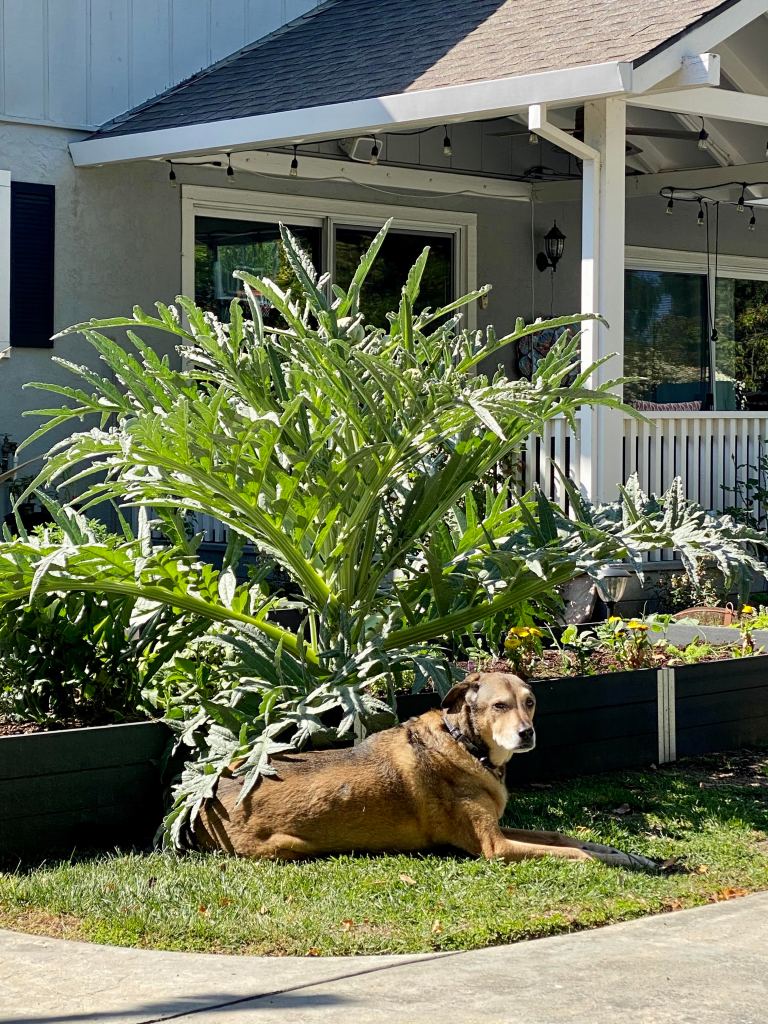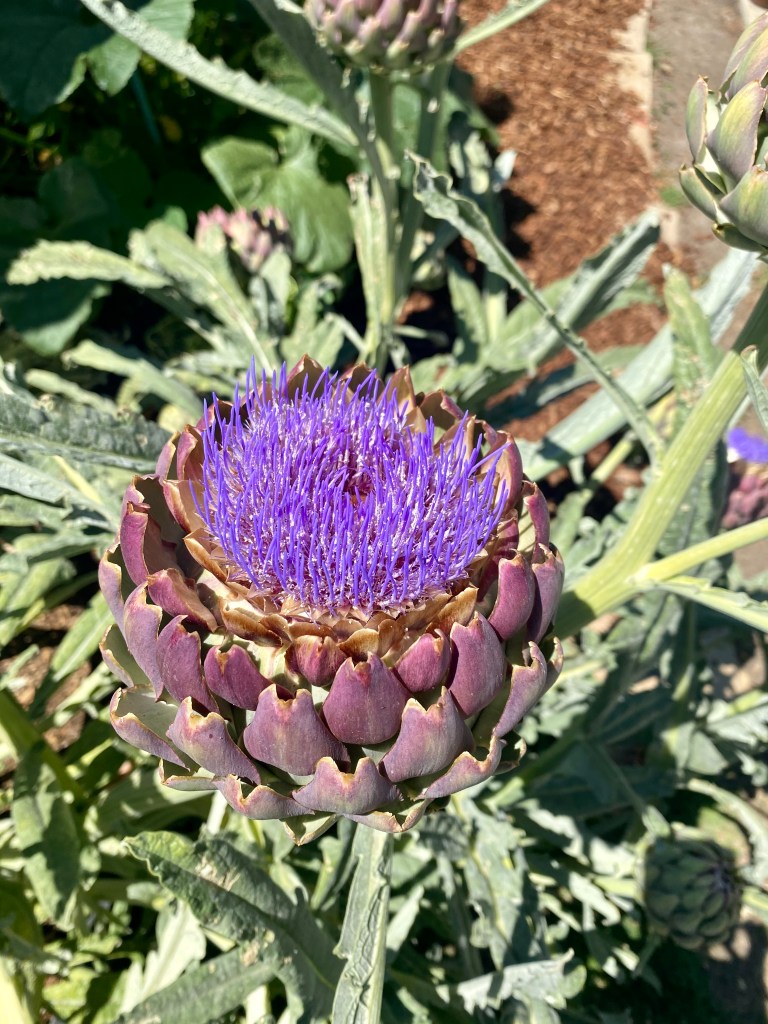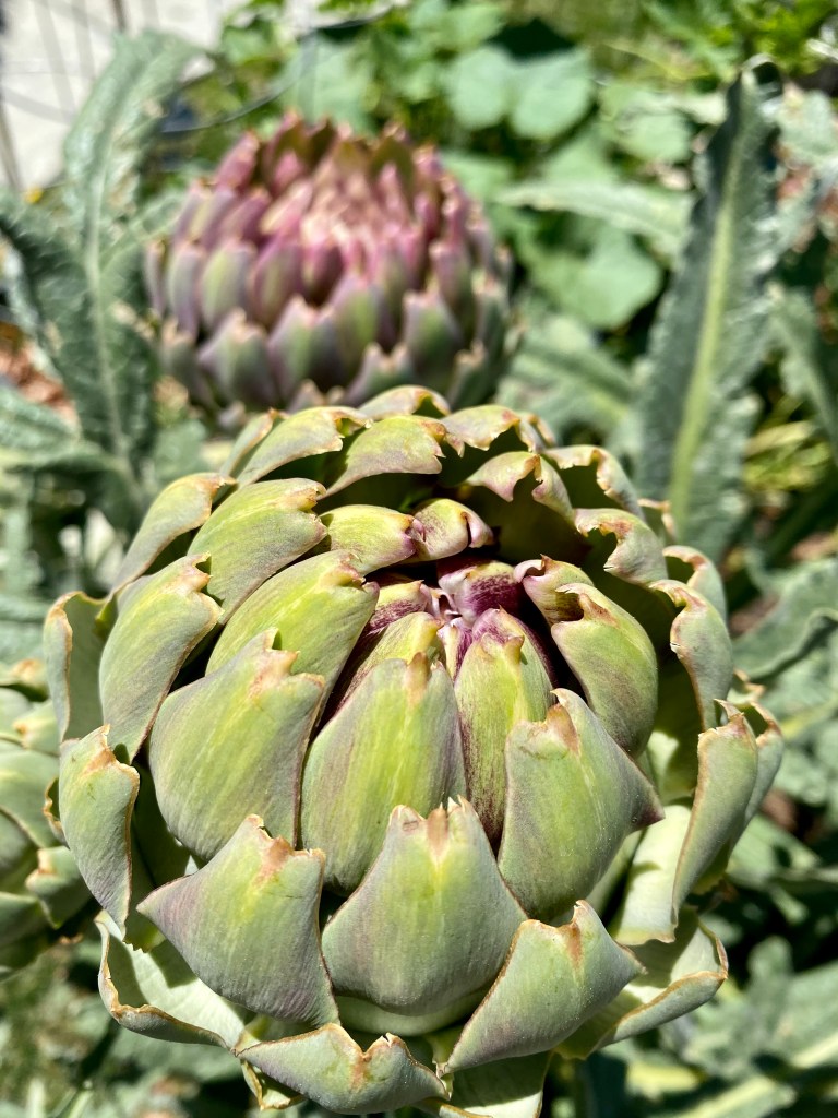 I didn’t know it at the time, but last year, I planted an artichoke in my raised bed, not realizing how big it would grow. It came back with a vengeance this year, and that’s how I learned that it’s a perennial.
