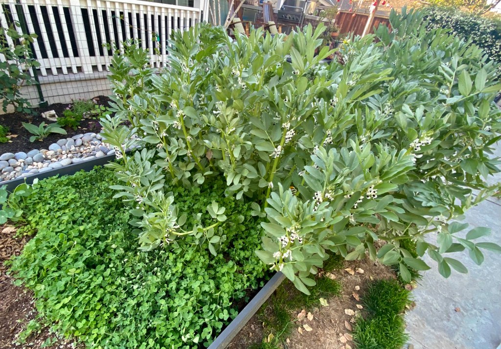 - Cover crops or green manures is a form of living mulch (an example would be crimson clover, seen on the left of the first image). On the right are fava beans, a leguminous cover crop that is a nitrogen fixer, which means they pull nitrogen from the atmosphere and sink it into the soil.