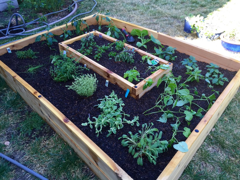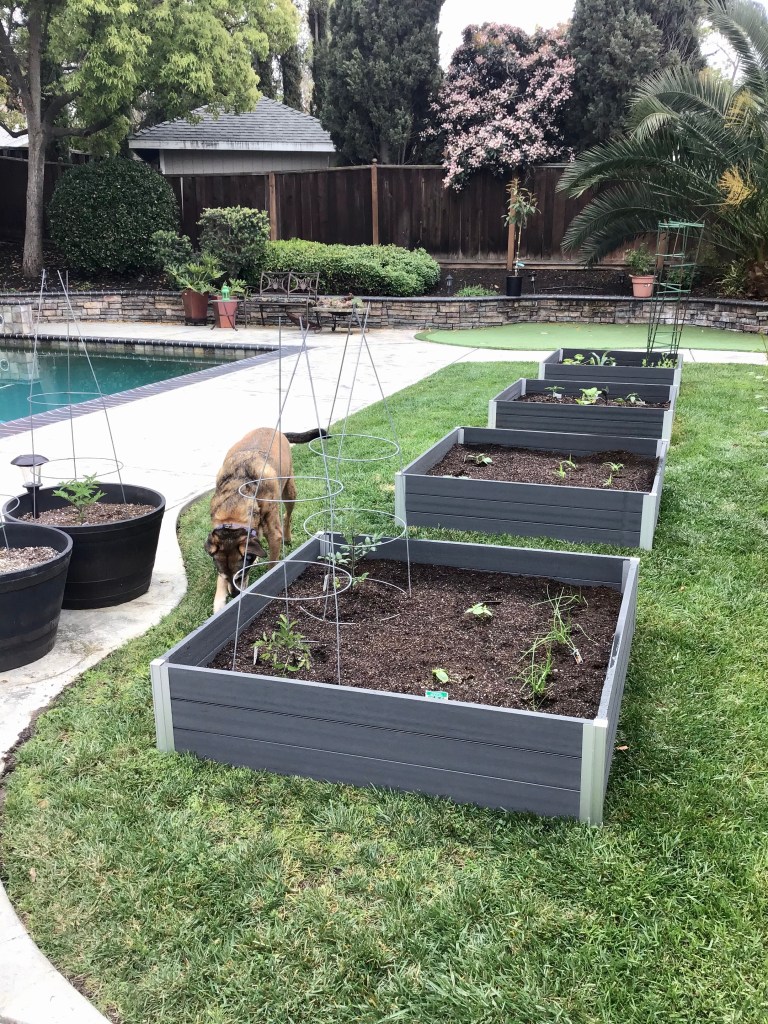 Raised beds allow better drainage, helps keep weeds and critters out (as you can see, your pet dog can help too!), and extends the planting season because the soil warms up faster; and you can utilize season extenders like hoop houses or low tunnels.